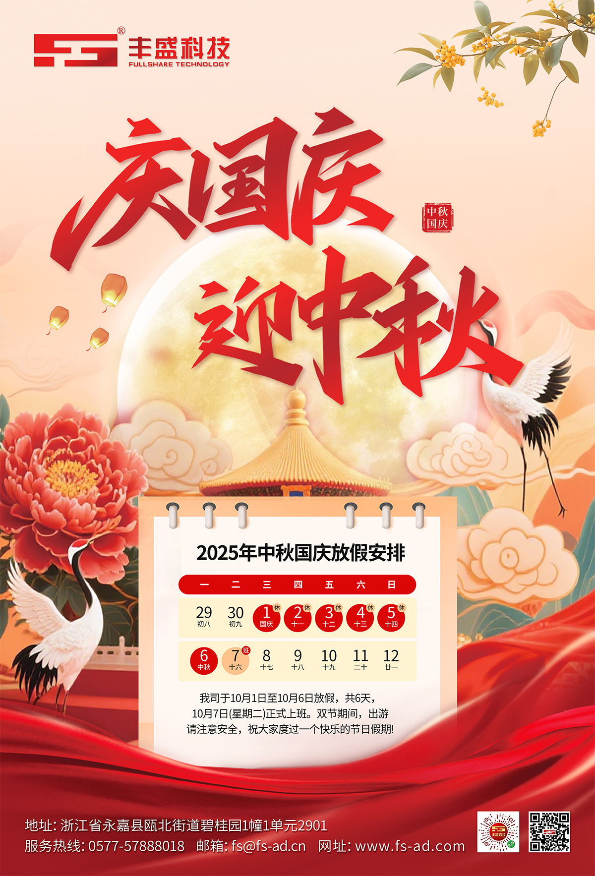 發布日期:2025-09-30 14:34:46錦繡中華,喜迎華誕;皓月當空,情滿中秋。值此國慶中秋雙節之際,